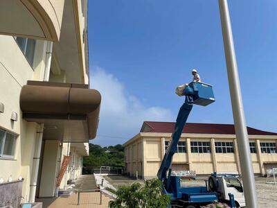 先日からお知らせしていた校舎の時計ですが、取り換えていただきました。